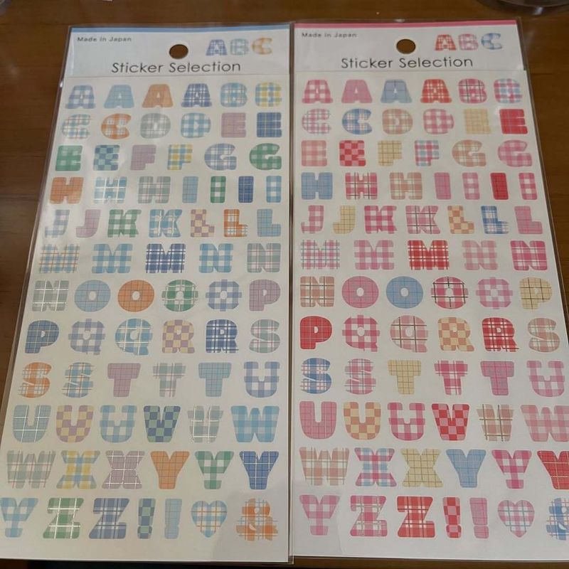 These products are packets of letter stickers with a plaid pattern on them. I found them at my local Seria store recently, and each was 100 yen plus tax.
