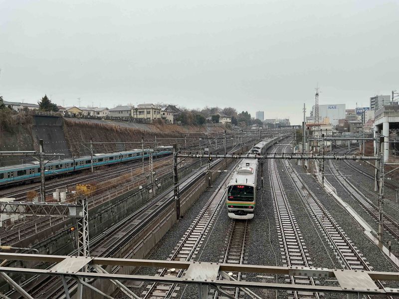 When I change trains at Nippori Station, I always budget a few minutes to see the "Train Museum". It's a tiny balcony on Shimogoinden Bridge at the north exit. Walk north across the road, and you'll find a tiny balcony overlooking the train lines. From the balcony, you can spot the Tohoku Line, Yamanote Line, Shinkansen, Takasaki Line, Utsunomiya Line, Joban Line, and Keisei Line trains. I visited on a holiday, and spent about 10 minutes train-spotting. On a wall above the lines, you'll see a mural with depictions and names of the lines.