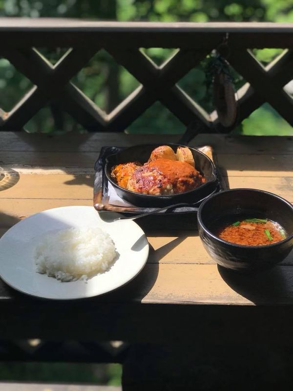 If you're in the Okutama area and looking for a place to eat, I highly recommend a visit to Earth Garden. The scenery from the restaurant is just stunning, and the menu has a variety of options to choose from. The hamburger steak is the thing that most people visit here for, but they also have katsu, pizza, sausages, and more. Overall definitely a western-style leaning menu, but for me that's a plus. Menus are only in Japanese but they do have photos accompanying most menu options.