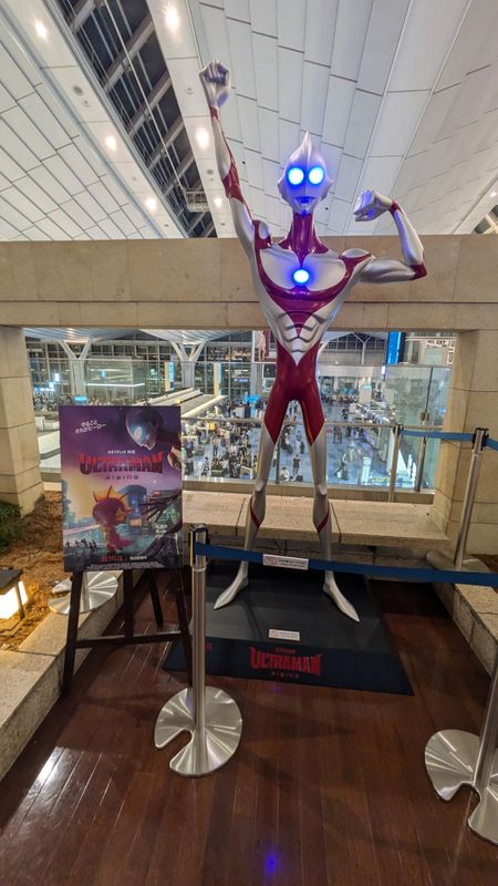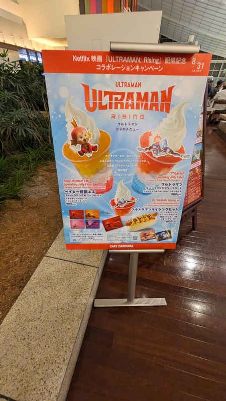 We were drawn to the cafe by the skinny Ultraman statue, but to be honest, it wasn't great. They didn't have any food that interested us, so we just got drinks - the limited edition Ultraman rising drink floats which were good but overpriced. They do have a few food items on their menu, but they don't look very appealing. The hot dog seems to be the most popular.