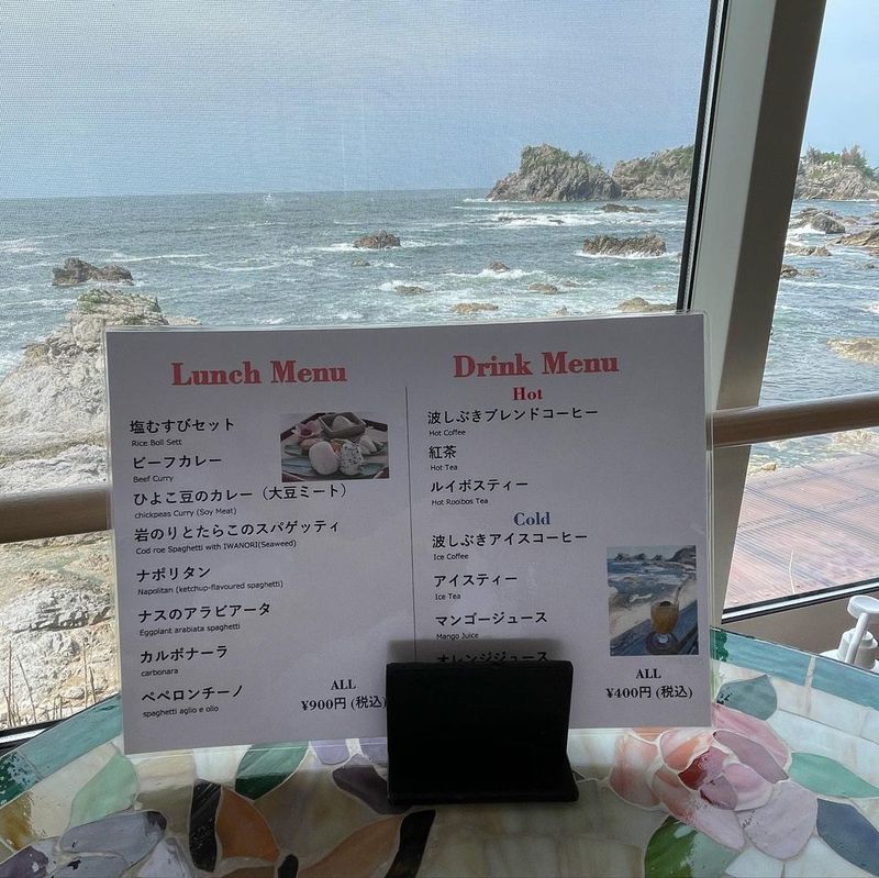 Salt & Cafe has a gorgeous vantage point right out over the Sea of Japan waters, and it gives a beautiful ambience to your meal or coffee. On the food front they have dishes like beef curry (there's a chickpea/soy meat version if you're a plant-based eater), several pasta dishes, or an onigiri set. They also do a salt soft serve ice cream which is the perfect mix of sweet-salty flavors! They're open 10am until 4pm but closed on Thursdays, and there's easy parking right out front. Definitely a place to sit and soak up the views for a while.