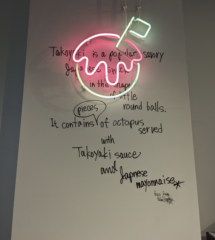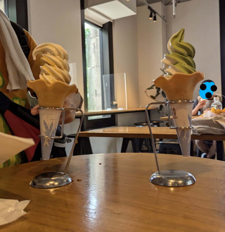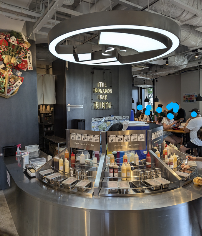 We stopped by this place to cool down during our summer trip to Osaka. We were done with the castle around midday so we darted into the nearby Mirai shopping center and found space to sit in this place, so we enjoyed ice cream and kakigori. This place is better known for takoyaki with self serve toppings, but unfortunately we weren't in the mood for that when we visited. It was a nice, cool place. I was afraid the matcha flavor on the kakigori would counter the fruit flavors unpleasantly but I was wrong. That said, we didn't spring for the sweetened condensed milk, so it was very much like an American snow cone, just with better ice.