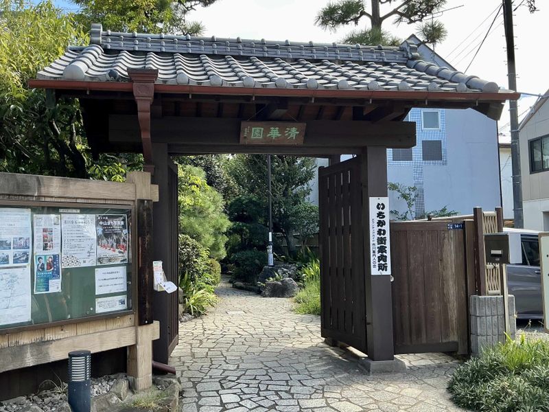 In the Nakayama area of Ichikawa City, on the approach to Hokekyoji temple complex, there is a tiny garden and heritage house. The house, donated to the city in the 1990s, serves as an information centre and exhibition venue. The garden has two pavilions, some stone garden statuary, and attractive feature trees. It's quiet and not much to look at most of the year. I recommend going in Hina Matsuri season as it's one location that displays hina dolls. The parking area has a Hello Cycling bicycle rental station. Admission is free, and it's open from 9 a.m. to 5 p.m. daily.