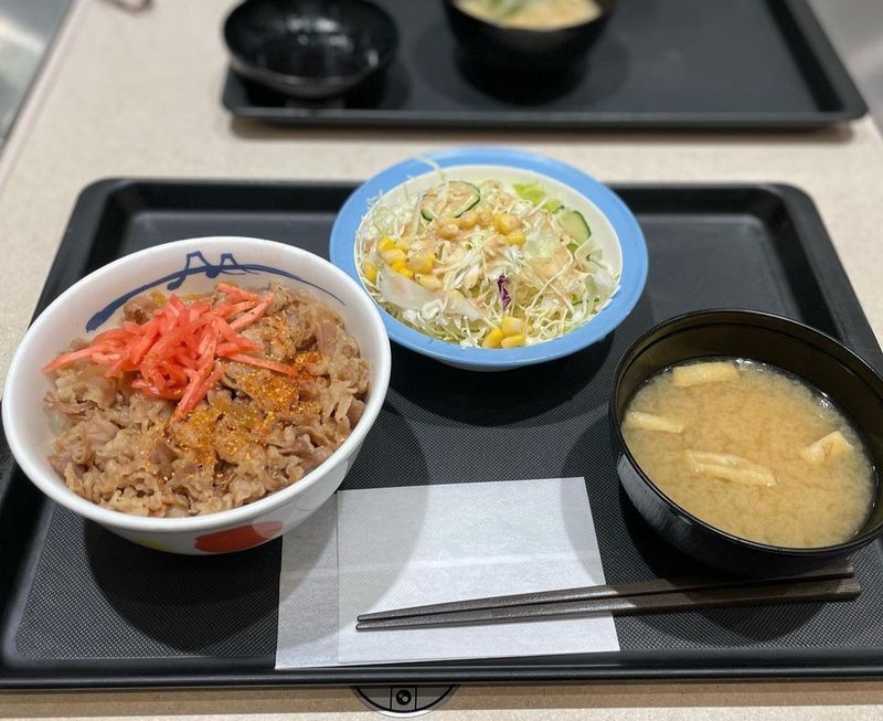 Matsuya is a chain of gyudon restaurants that you can find in many parts of Japan, but this relates specifically to the store in Mitsuke, Niigata Prefecture. Because it's a stand-alone store there is plenty of parking right out the front, and there's also a drive-thru if you don't have time to dine in. You order at an electronic kiosk when eating in, and there's the option for English to be selected via the touch screen. Food is served quickly and it's tasty and inexpensive too.